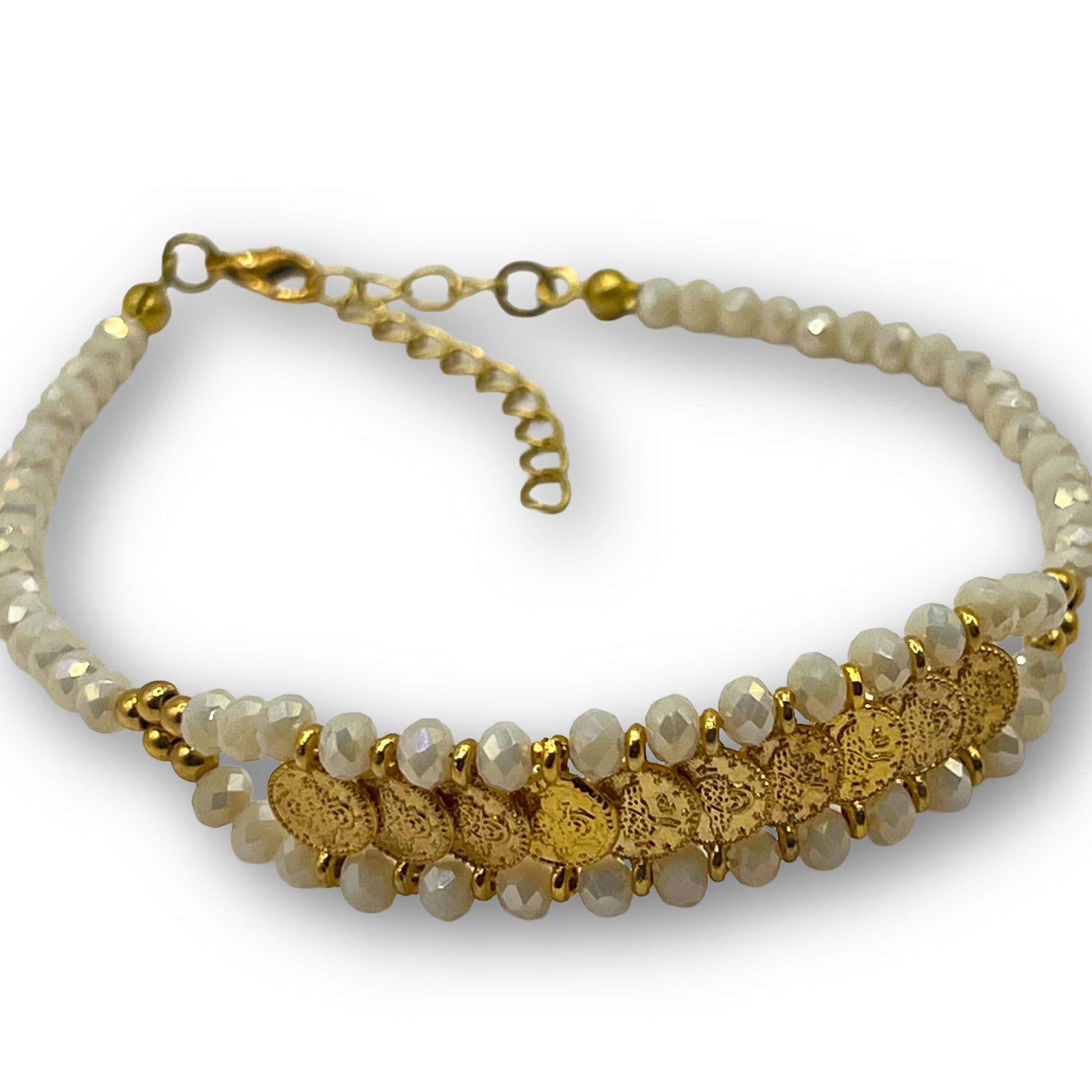 Define regal rebellion with the Coin Bead Anklet! This striking piece empowers you to carve your own path with confidence.