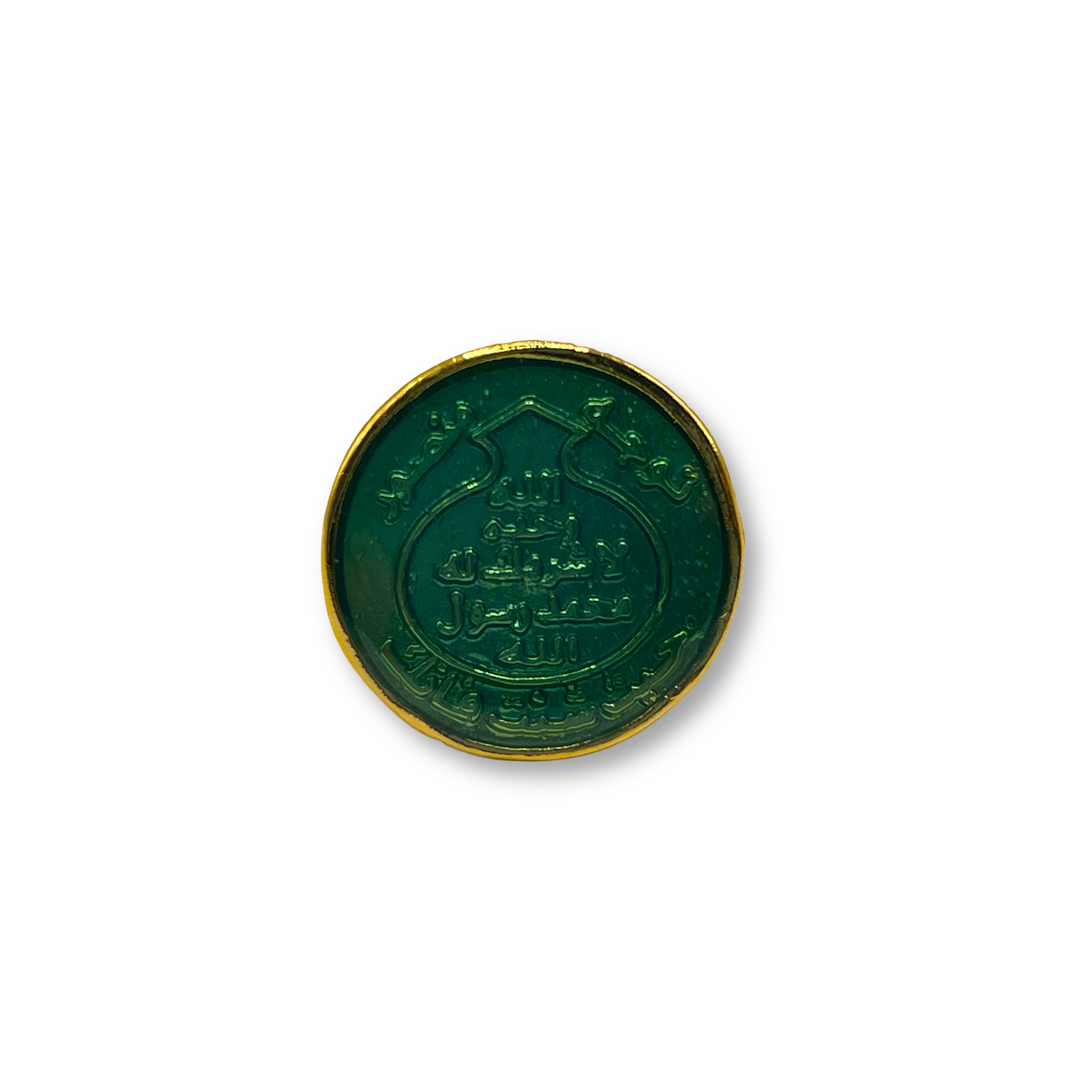 This enchanting green enamel ring features a central dome motif encircled by intricate Arabic script, evoking spiritual resilience and faith. The gold-rimmed border adds a luxurious touch, making it an ideal talisman for the woman who draws strength from her roots. Wear it to channel inner peace and assert your presence in any setting.